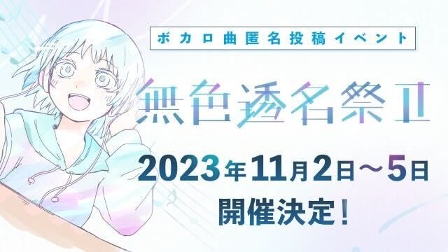また、2023年11月2日(木)~11月5日(日)の4日間にわたり、ボカロ楽曲の匿名投稿イベント「無色透名祭Ⅱ」が開催することが決定