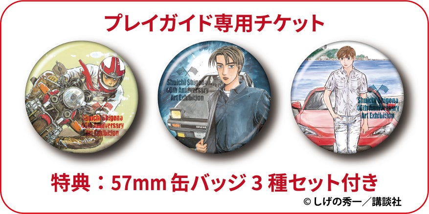 それぞれの作品のイラストを使った「缶バッジ3種セット」が付いた特典付き入場券を各プレイガイドで販売中!