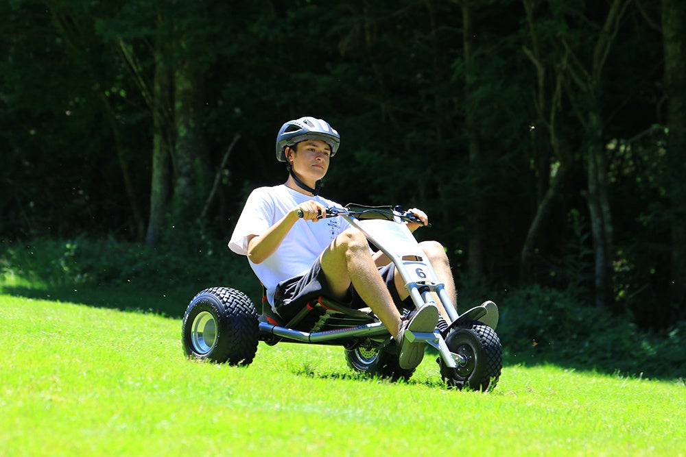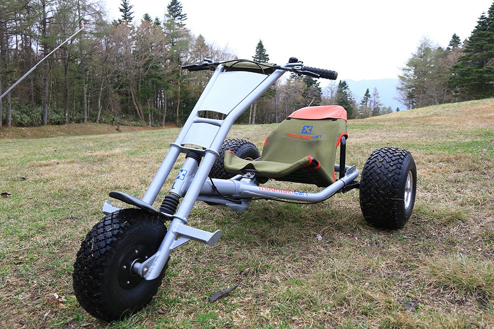 マウンテンカートは、ハンドル、ブレーキのみで操作する3輪カートで、難しい知識や経験がなくても体験できるアクティビティです。冬は初中級者向けのゲレンデとして使用しているふじてんコース内で最長のダイナミックコース(1,300m)の傾斜を利用し、富士山の麓の自然を体感しながら、芝生のコースを走り降りる新感覚を提供いたします。
