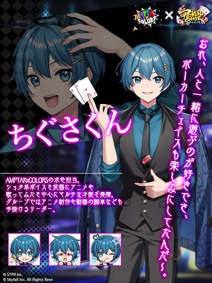 株式会社Skyfall(東京都港区 代表取締役社長:長谷川 智一、以下Skyfall)が運営するバトロワ式オンラインポーカーゲーム『ポーカーチェイス』は、2.5次元歌い手アイドルグループ「すとぷり」「Knight A – 騎士A -」「AMPTAKxCOLORS」「めておら – Meteorites -」から選出された6名の「STPR Creators」と、2025年2月5日(水) 〜 2月26日(水)の期間限定でコラボイベントを初めて開催することが決定しました。