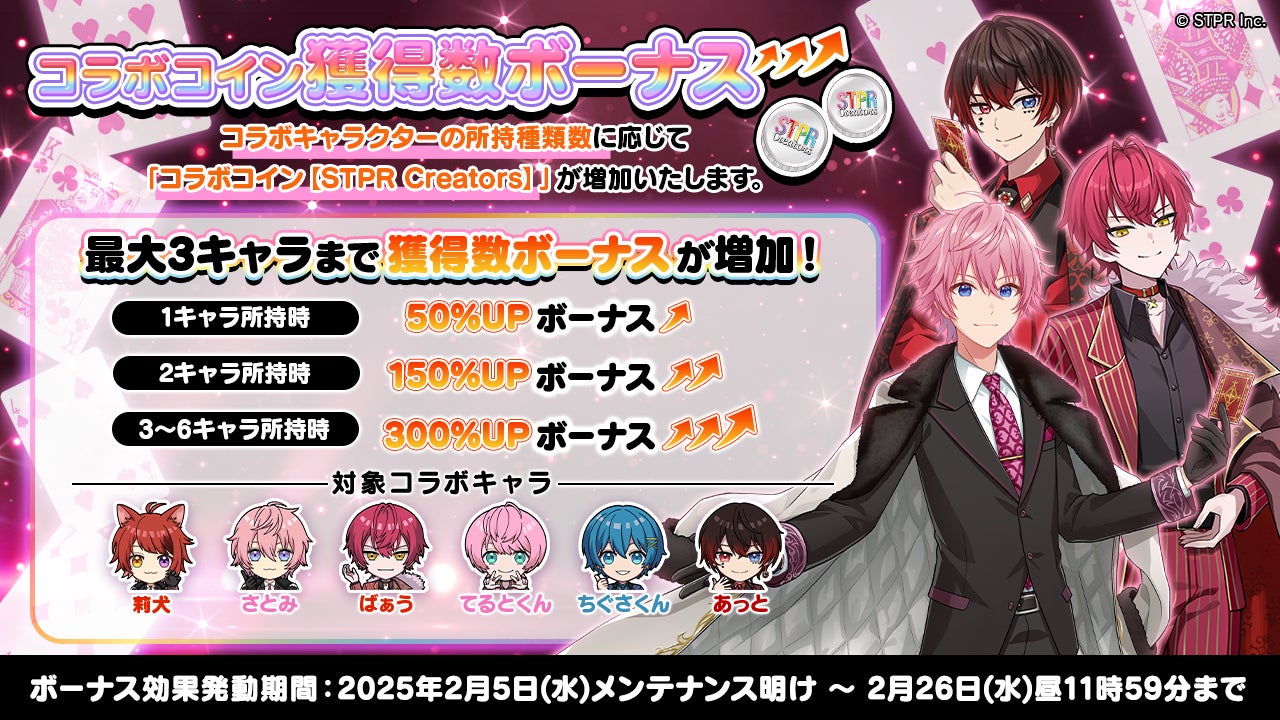 「コラボコイン【STPR Creators】」獲得数ボーナスについて