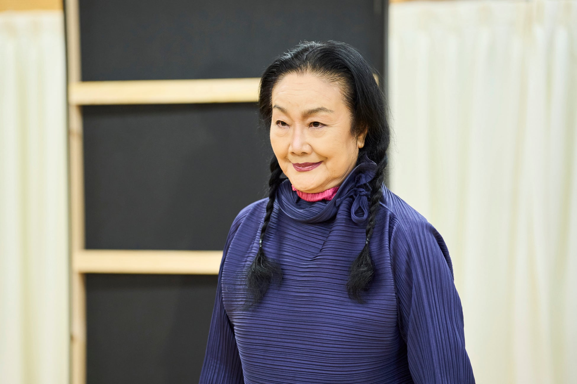 朗読劇《百物語》も話題を呼んだ語りの名手・白石加代子が台本を手に地の文を語り始めますが、そこから次第に飛び出し駄菓子屋のおかみ紅子や他の登場人物に変身。