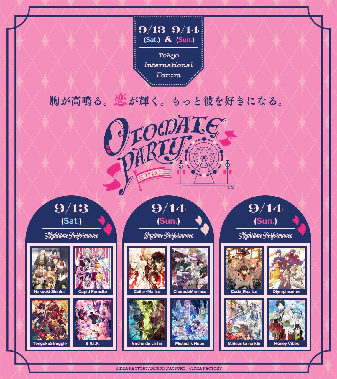 アイディアファクトリー株式会社(代表取締役社長:佐藤 嘉晃/所在地:東京都豊島区)の女性向けゲームブランド「オトメイト」は、2025年9月13日(土)・14日(日)に東京国際フォームラム ホールAにて全3公演行われる「オトメイトパーティー2025」の開催を発表いたしました。