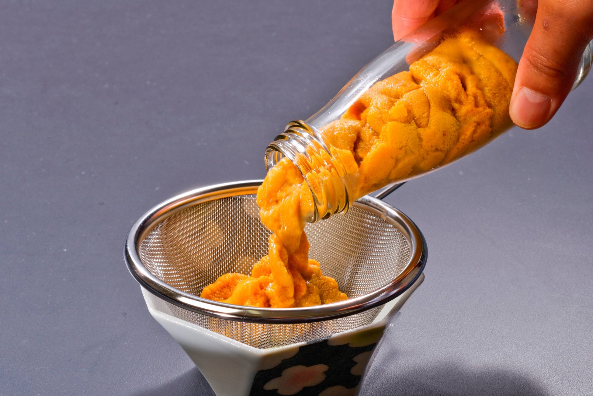発祥は岩手県山田町といわれ、古くから三陸地域に伝わる生ウニの保管・運搬方法です。ウニは空気に触れただけで溶けてしまう性質がありますが、牛乳瓶に入れることでウニの身が崩れにくく、見た目も美しく保つことができます。牛乳瓶の中には減菌処理された海水が入っており、ミョウバンなどの添加物が入っていないため生臭さが一切ありません!生ウニの濃厚な甘みの後に磯の塩味が口いっぱいに広がる贅沢な味わいです。