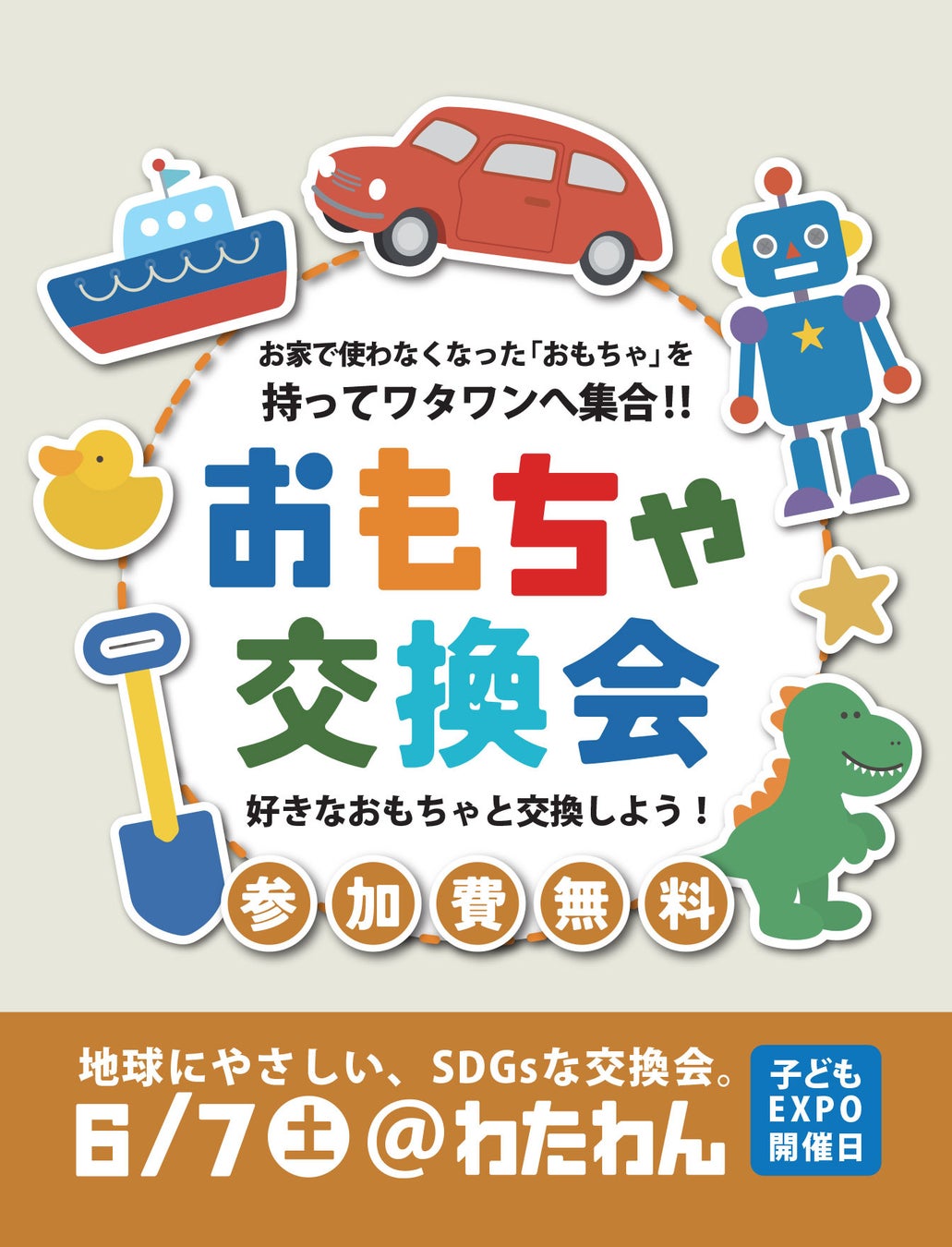 使わなくなったおもちゃが未来をつなぐ、ドキドキの1日!6月7日開催|WHATAWON『おもちゃ交換会』 お家で眠っているおもちゃが新しい命を吹き込まれる日。お仕事体験でチケットがもらえる特典も♪