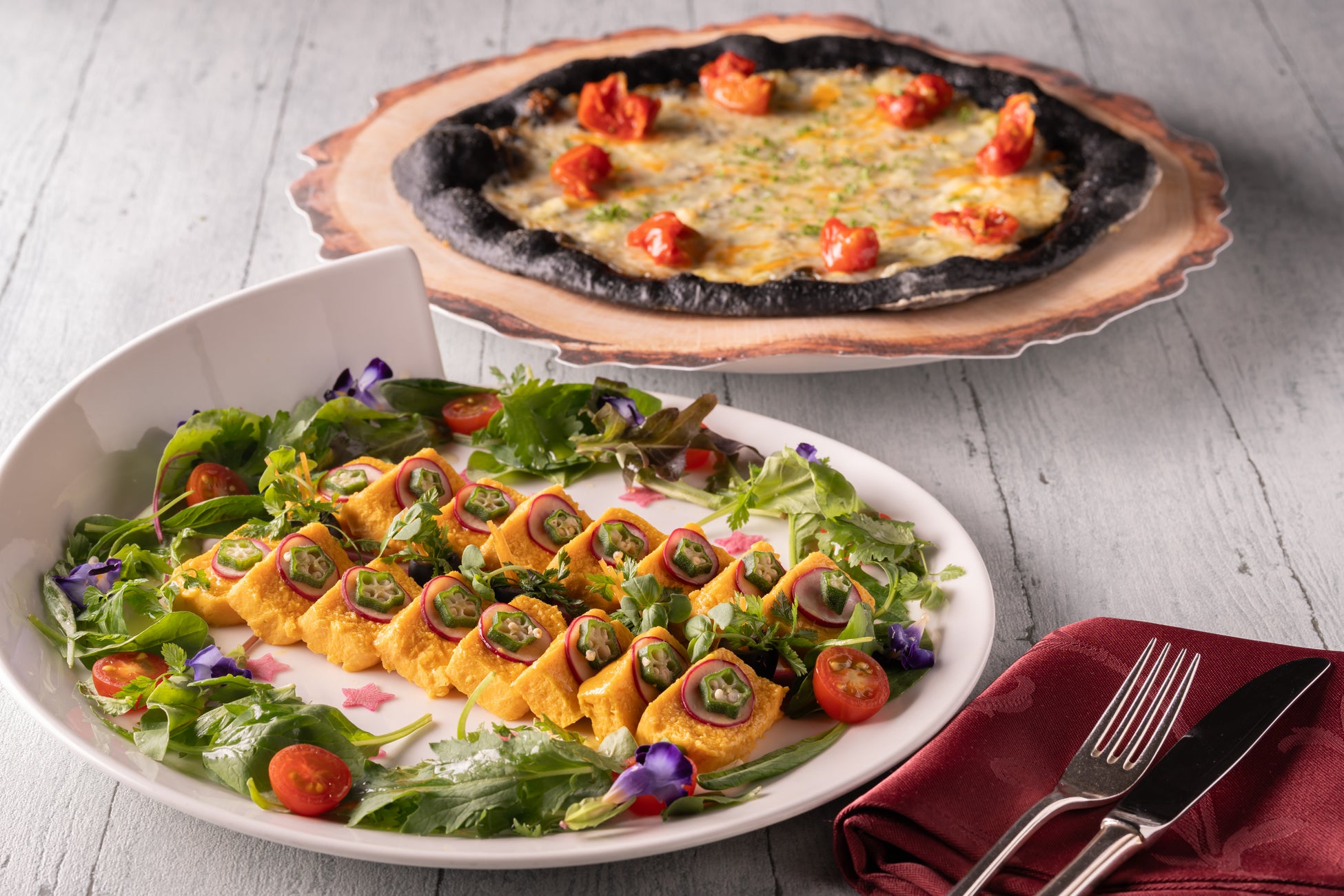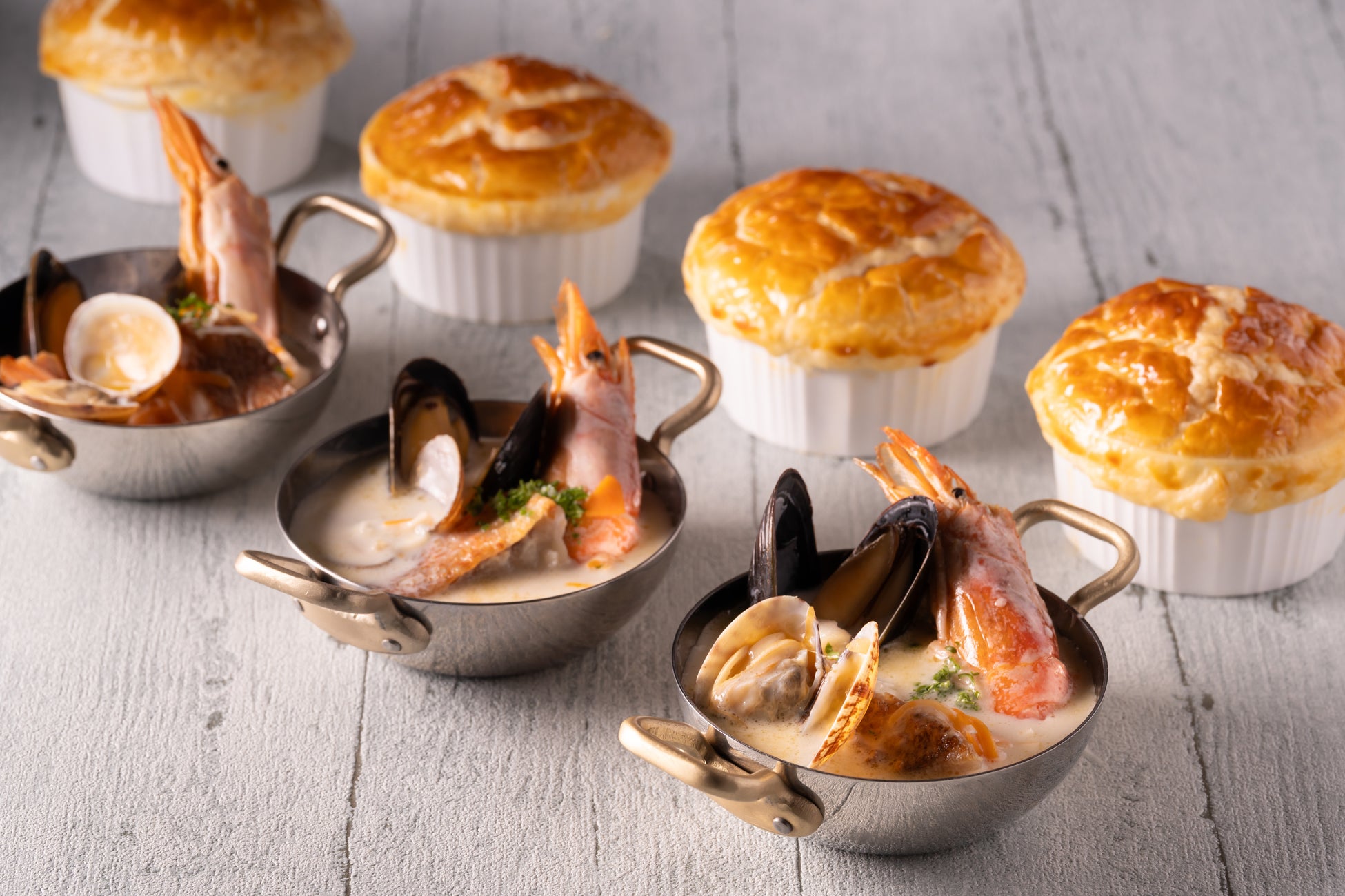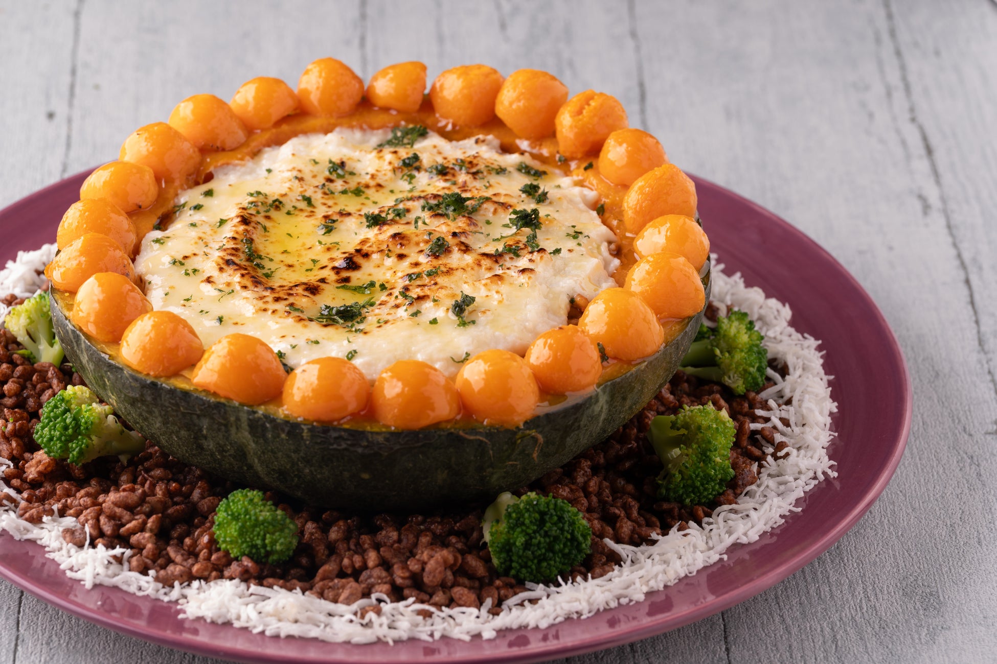 かぼちゃをまるごと器に見立て、旨みたっぷりの具材を詰めて焼き上げた「かぼちゃのボルケーノグラタン」はインパクト抜群の一品。さらに、キッシュやサラダなど、ハロウィンらしくかぼちゃをふんだんに使ったメニューもご用意しています。