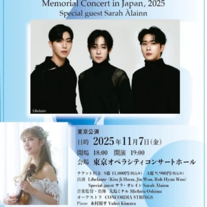 LibelanteのJin Wonは、近藤由紀子プロデューサーがコンコルディア20周年記念コンサート開催時にテノール歌手に歌ってほしい曲「そしてあなたを」(松井五郎作詞、山下康介作曲、現在YouTubeにアップ)を歌うアーティストを探していた際に出会った、当時兵役を終えたばかりの延世大学の学生でした。その後、韓国の有名オーディション番組で優勝を果たし、Libelanteというクラシッククロスオーバーグループのメンバーとしてプロデビューし、数々の賞を受賞しました。そして、2025年8月28日には、First Brand Awards2025のクロスオーバー部門で最高位のBrand賞を受賞するなど、今や韓国では非常に大きな人気を誇り、目覚ましい活躍を続けています。