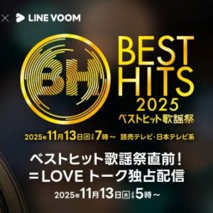 エンタメ2025年11月12日『ベストヒット歌謡祭』出演アーティスト=LOVE登場の放送直前番組をLINE MUSICとLINE VOOMで独占配信決定!=LOVEの限定画像が見られる特別企画も同時開催