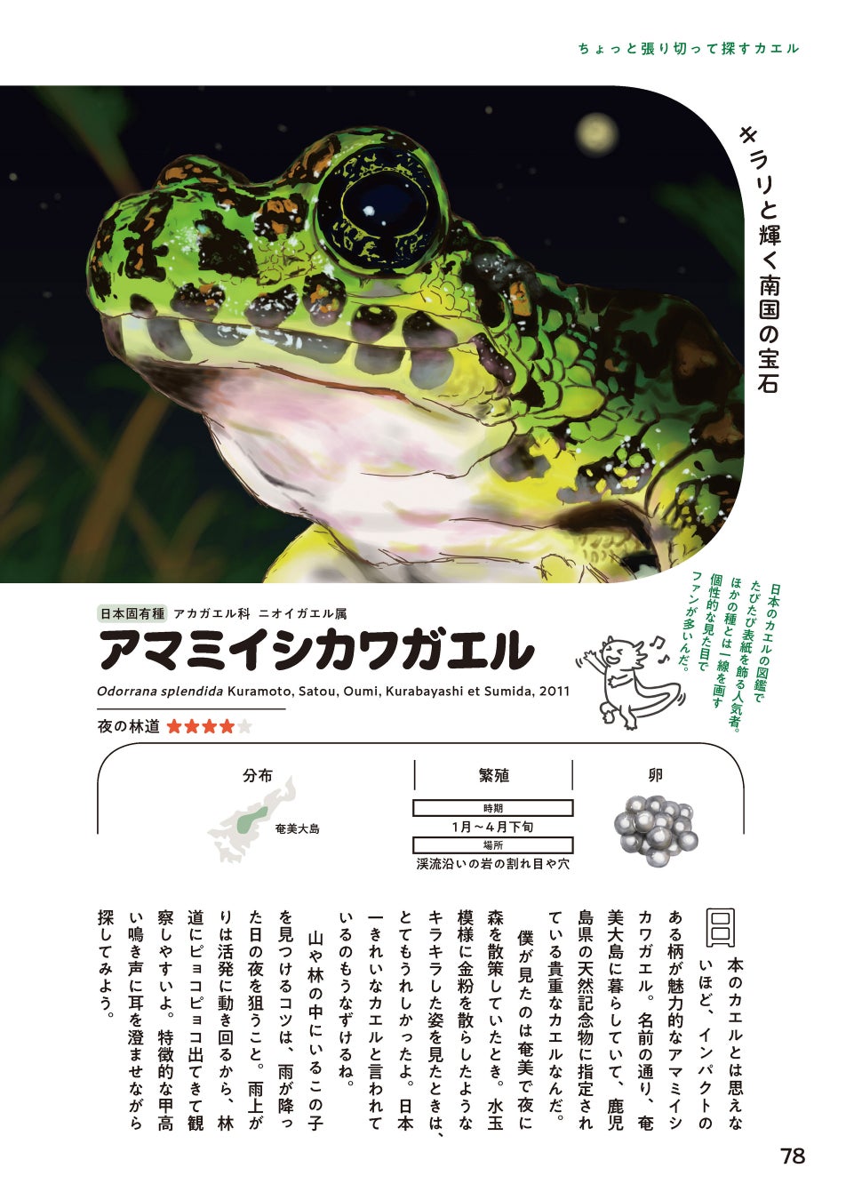 細部にこだわった超リアルなイラスト、詳細な観察・解説でわかる特徴や生態、それぞれのカエルへの思い入れや思い出まで、全力なさこの君の目を通して見てみれば、あなたもカエルの魅力に気づくはず。
