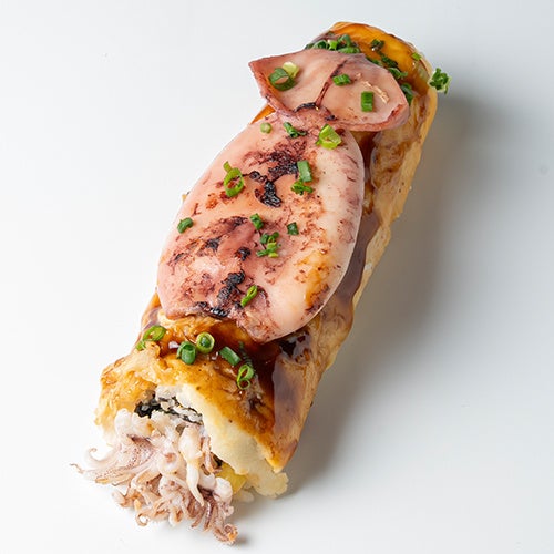 ↑●〈むろや〉イカ焼きでイカが?巻き (1本)税込3,000円 ■地1階 東