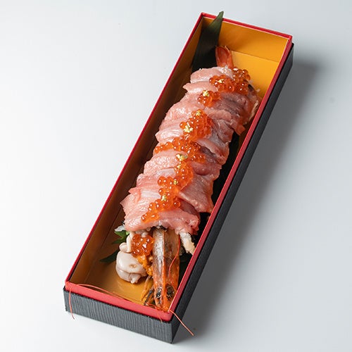 白子やいくら、うに、帆立貝柱をふんだんに。脂がたっぷりのった大トロを巻き付け、贅を尽くした恵方巻です。