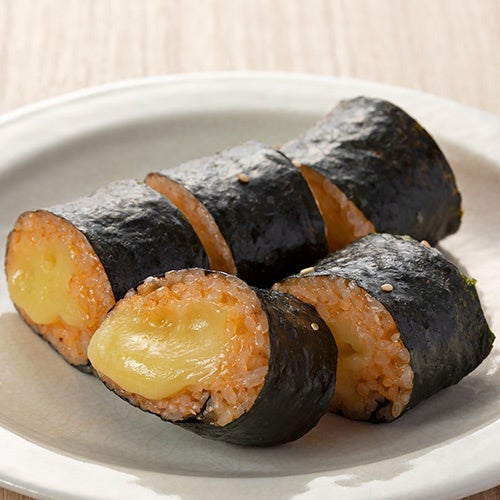 コチュジャン風味の特製ご飯に、たっぷりのモッツァレラチーズを巻き込んだキンパです。