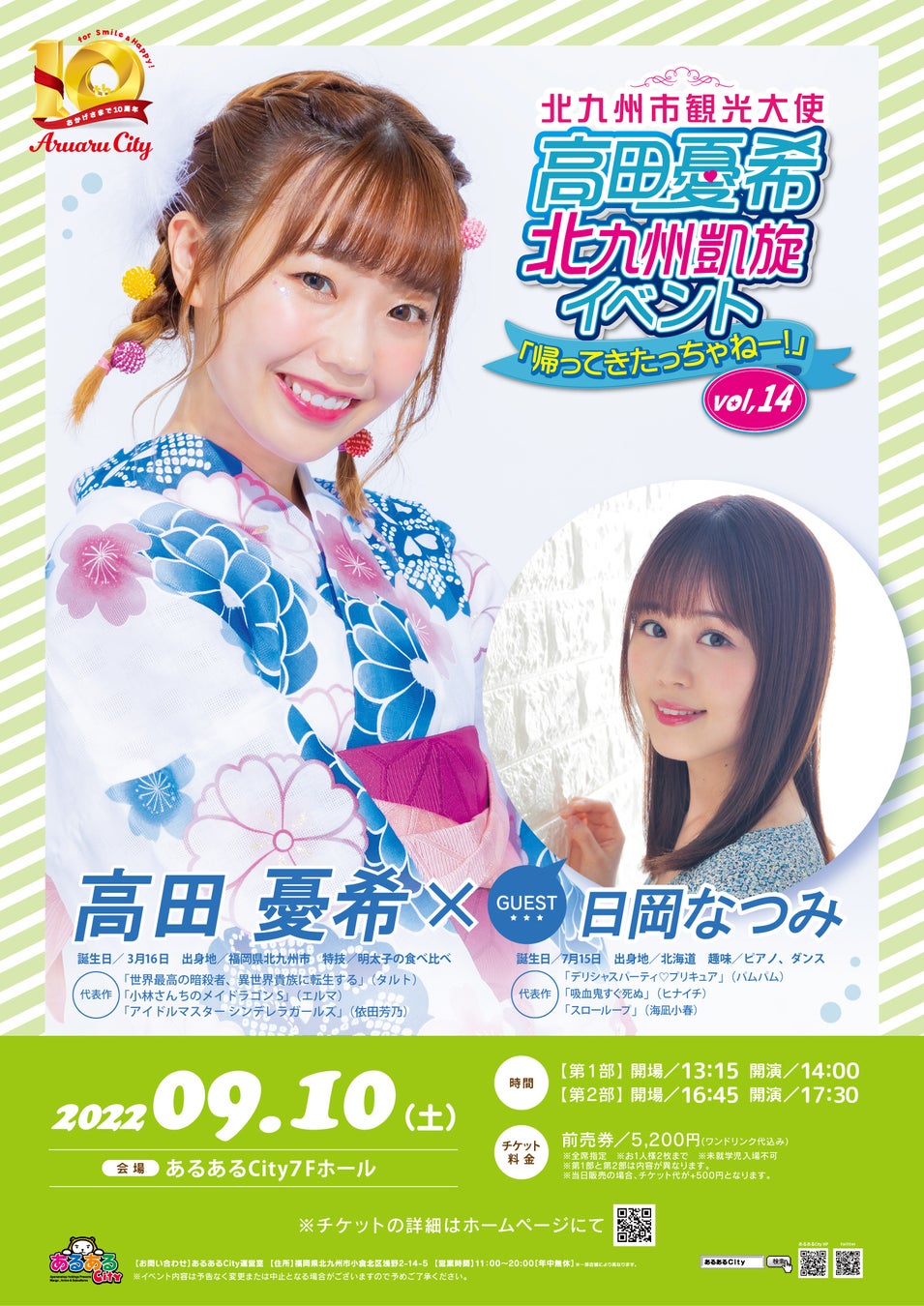 ● 9月10日(土) 高田憂希北九州凱旋イベント「帰ってきたっちゃねー!」vol.14