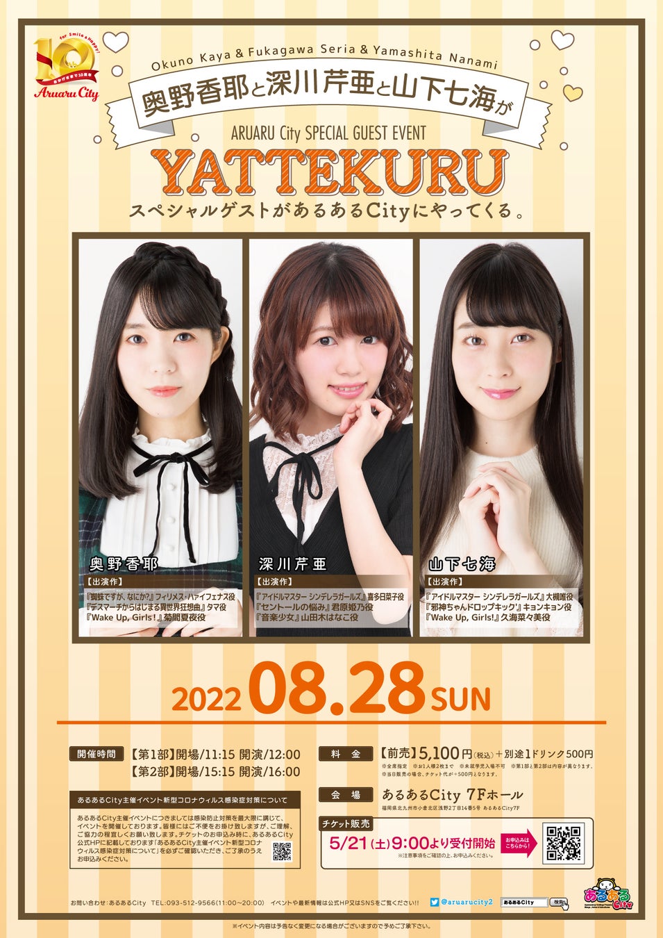 ● 8月28日(日) 奥野香耶と深川芹亜と山下七海がYATTEKURU