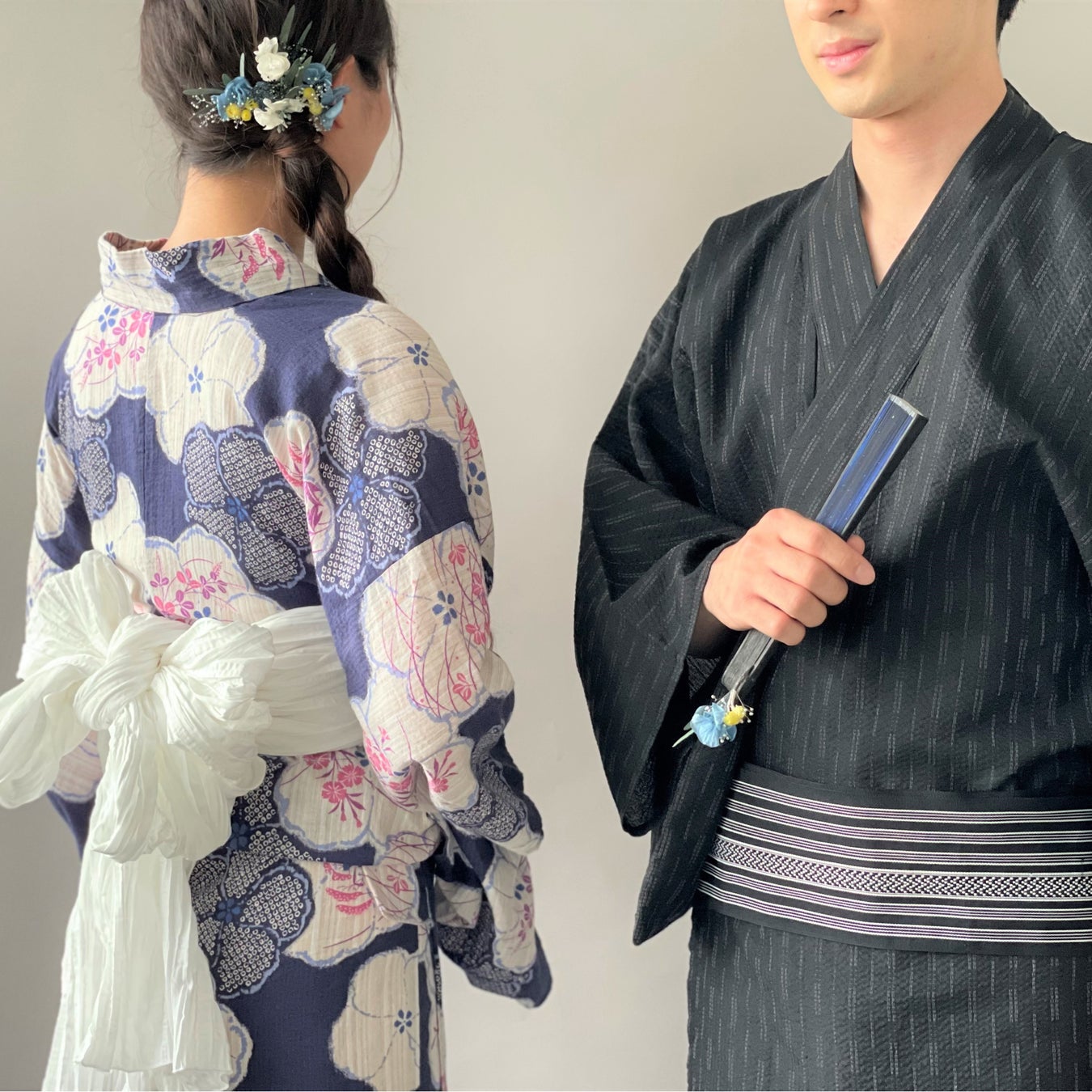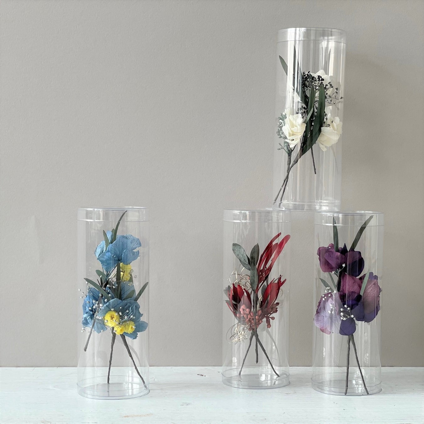 持ち運びにも便利なケース入り。3 個をまとめてコサージュのようにしたり、一つ一つ分けてスタイリングすることもできます。ヘアアクセサリーと扇子アクセサリーに分けたり、友人やパートナーとシェアして楽しむことも可能です。普段は小さな花瓶等に飾っても楽しめます。