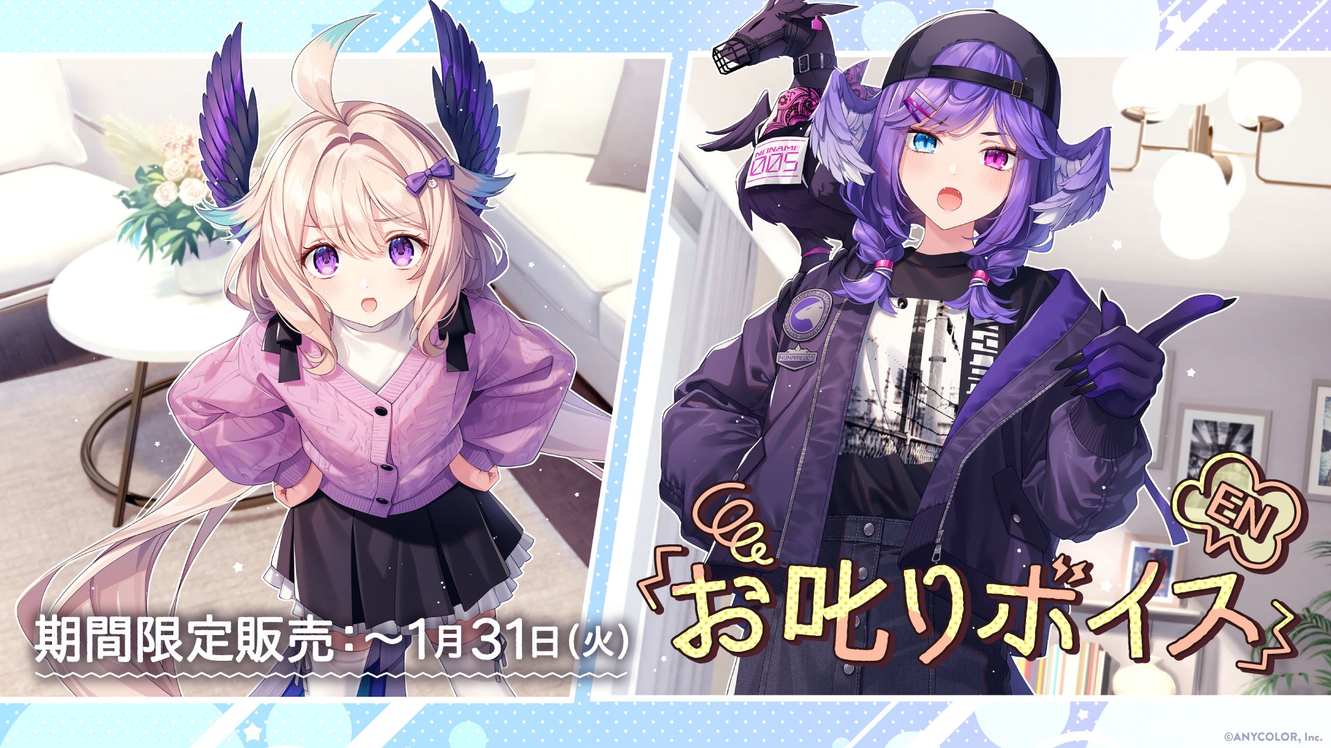 ANYCOLOR株式会社(本社:東京都港区 代表取締役:田角陸、以下「当社」)が運営するVTuber/バーチャルライバーグループ「にじさんじ」と「NIJISANJI EN」は、「甘やかしボイス&お叱りボイス」を2023年1月18日(水)11時から、にじさんじオフィシャルストア・NIJISANJI EN Official Storeにて販売を開始