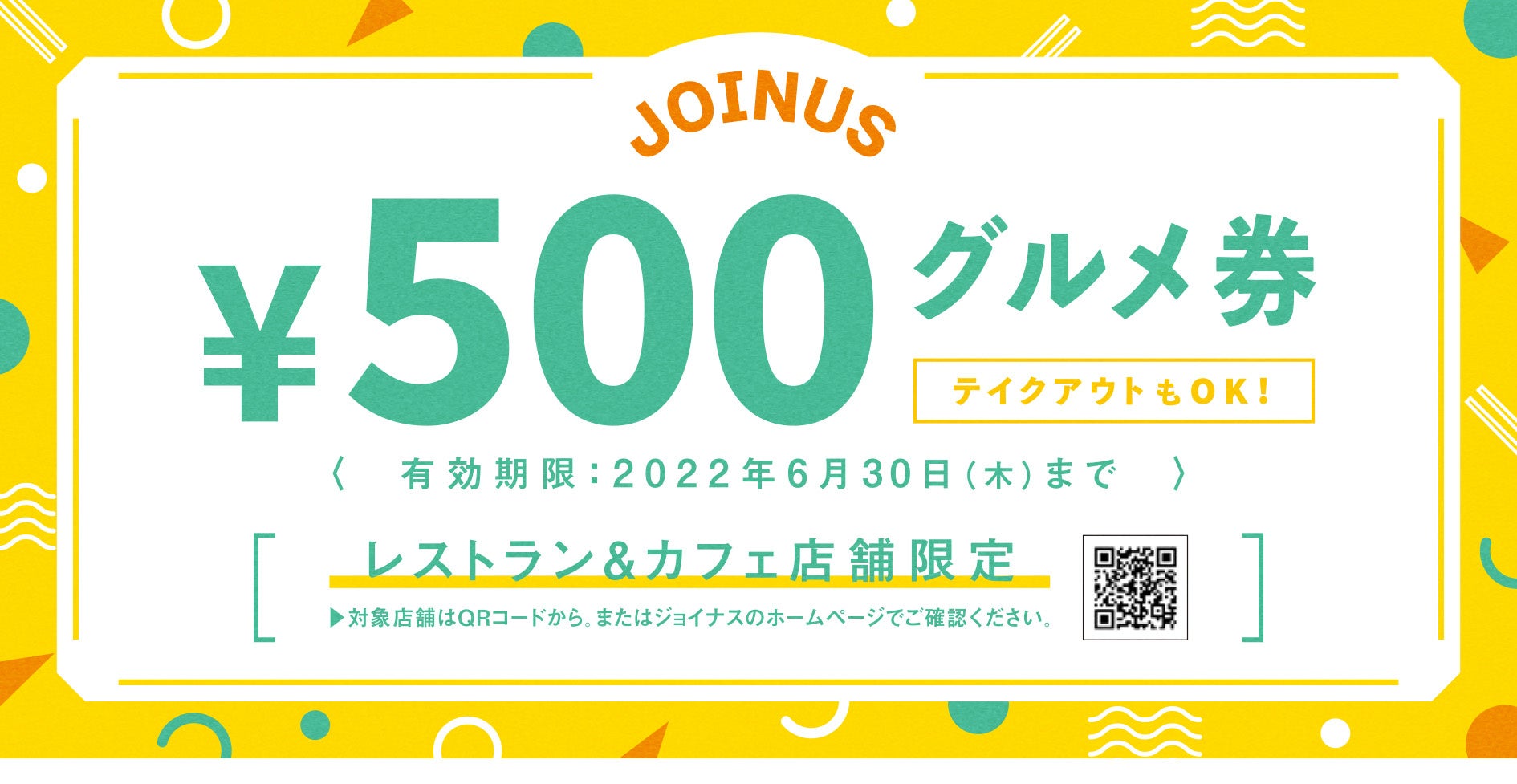 ※グルメ券はジョイナスのレストラン&カフェ(イートイン・テイクアウトどちらでも可)にてご利用いただけます。