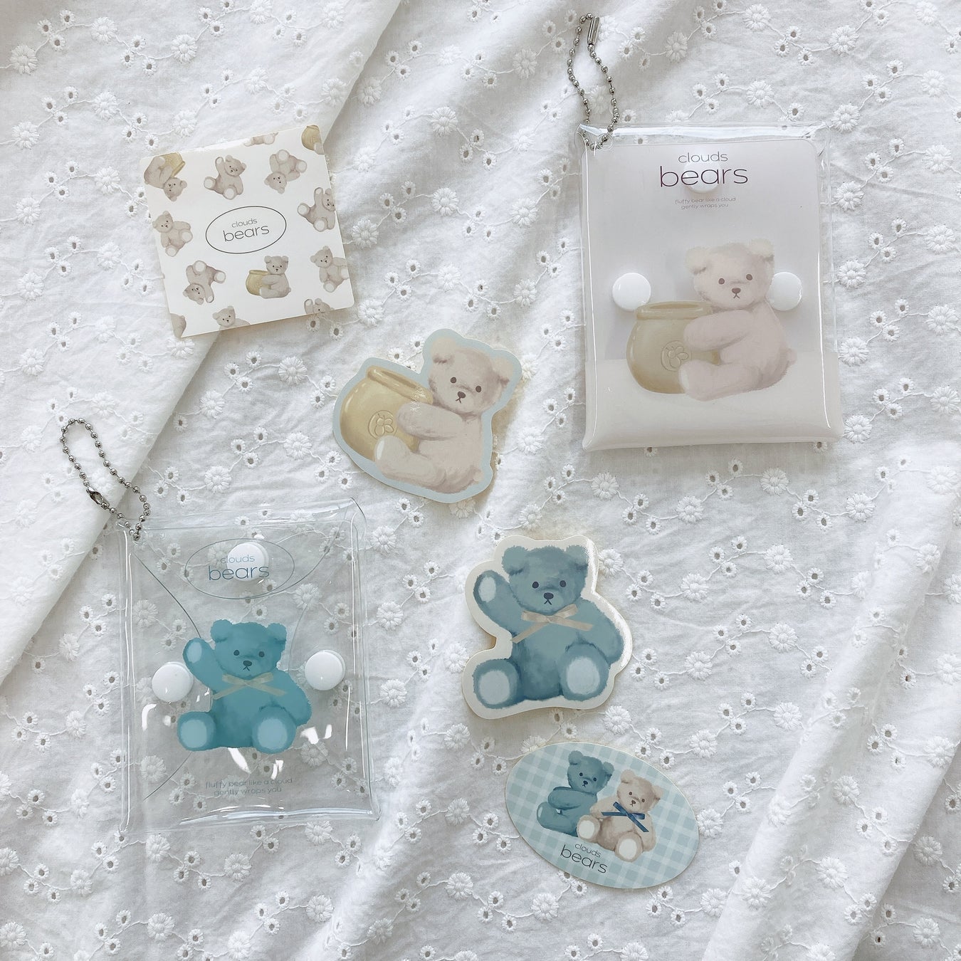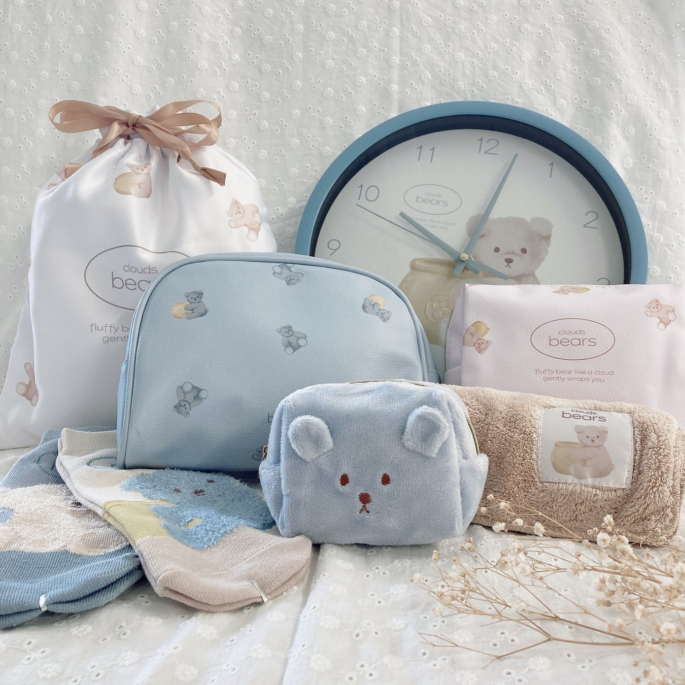 『clouds bears』は韓国やSNSで流行中のゆるめのくまをモチーフにしたサンキューマートオリジナル雑貨シリーズの新作です。今年の1月に発売した冬仕様のくまさん雑貨『Fluffy Bears』(ふわふわのくま)が大変多くのご好評を頂いたことから、オールシーズンで使用頂けるアイテムも展開したいと、くすみブルーをベースにした『clouds bears』を企画しました。シンプルなワンポイントデザインや小さめの総柄のデザインを多く取り入れ、中高生だけでなく大人もおしゃれに持ち歩けるアイテムに仕上げています。