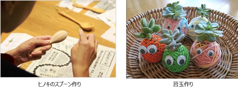 小中学生を対象としたヒノキのスプーン作りや、苔玉作りなどのワークショップを行います(人数限定)。