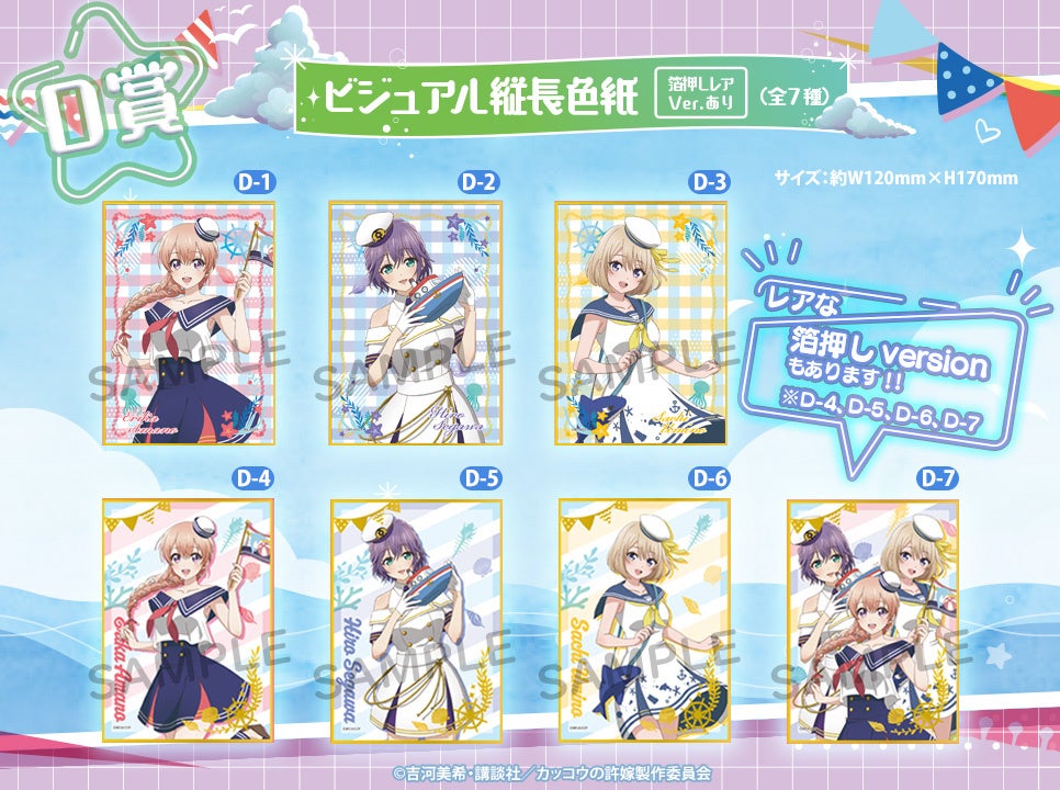 エリカ、ひろ、幸のヒロインたちにマリンテイストを組み合わせたくじメイトです。