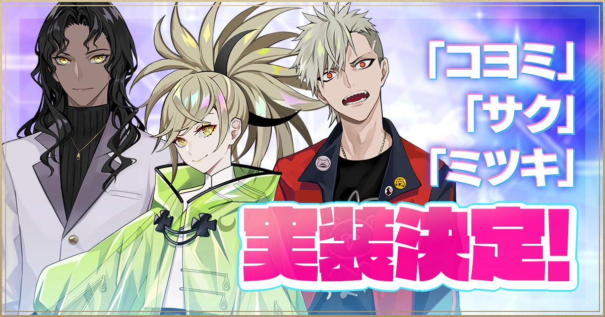 スマホゲーム『テクノロイド ユニゾンハート』メインストーリーに登場し、「月徒陰陽開心」「全知全能月詠唱」を歌った月光院コヨミ・サク・ミツキの3体が、ついにメモリーとして実装されます!2023年5月頃を目処に順次1体ずつ実装予定です。また、彼らの新しいユニット名は、ゲーム1周年当日となる 1月21日(土) に発表いたします。続報にご期待ください。